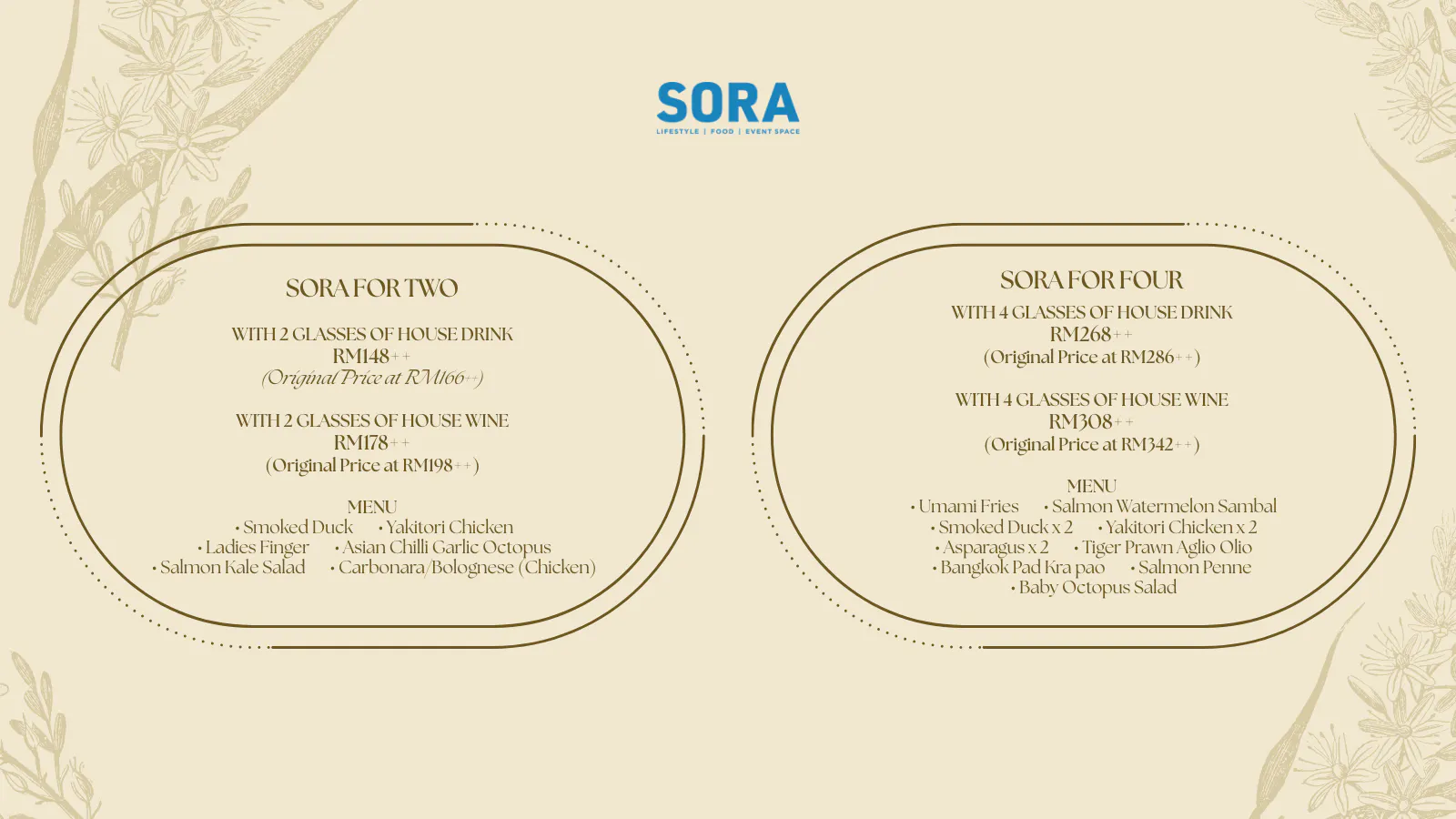 Indulge in delicious, revamped set menu of SORA For 2 & 4 with delightful flavours and make it an unforgettable experience. You bring the appetite and we bring the rest.