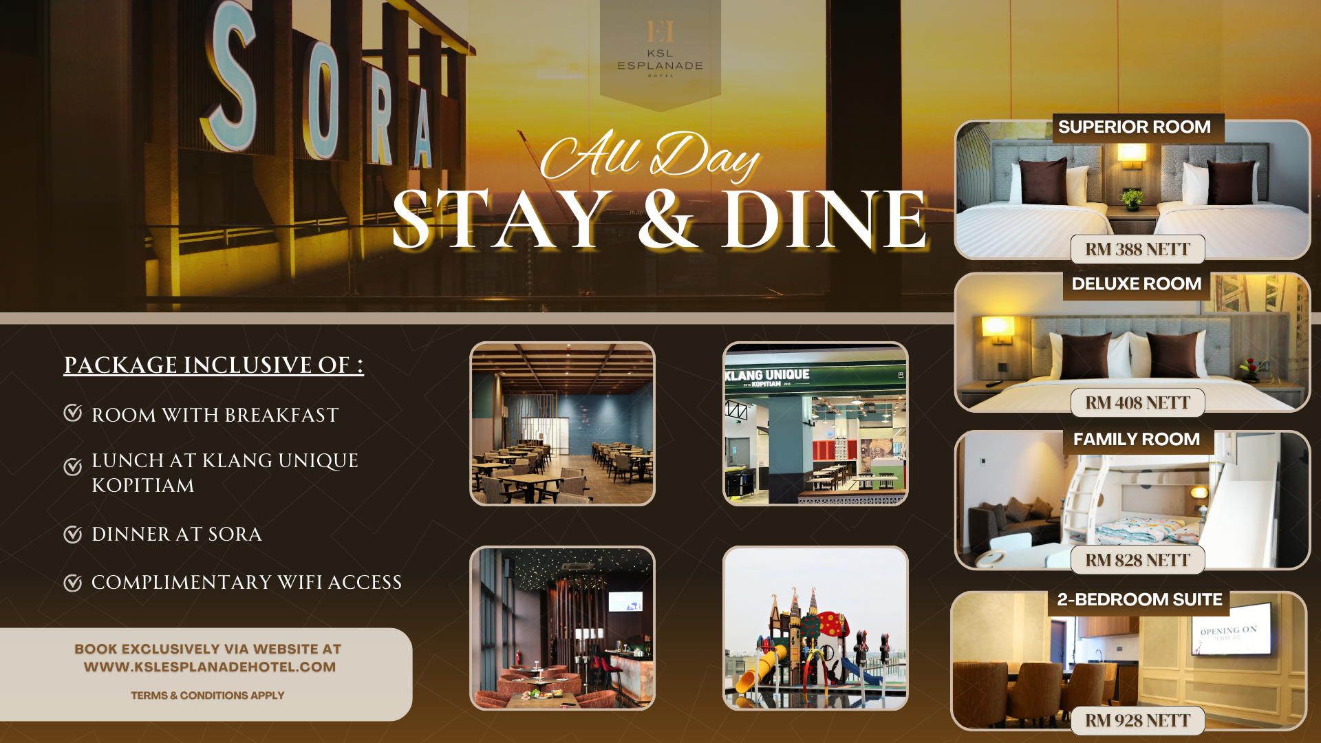 All Day - Stay & Dine全てのプロモーションを表示Stay, feast and celebrate with us. Enjoy a full board spread of breakfast, lunch and dinner.プロモーション 全てを表示 Wedding PackageCorporate Meeting PackageStay And Dine PackageNo Stress, Just RestSORA FOR 2 & 4Exclusive Deal For Return GuestsAlpaca B-day Bash StayLover's HideoutAfternoon Tea at SORARoom with OnsenFamily Splash OutLate RiserSora Family Lunch SetsSora Birthday BashKSL Esplanade Hotel x Believe FitnessRaya & RestAll Day - Stay & Dine
