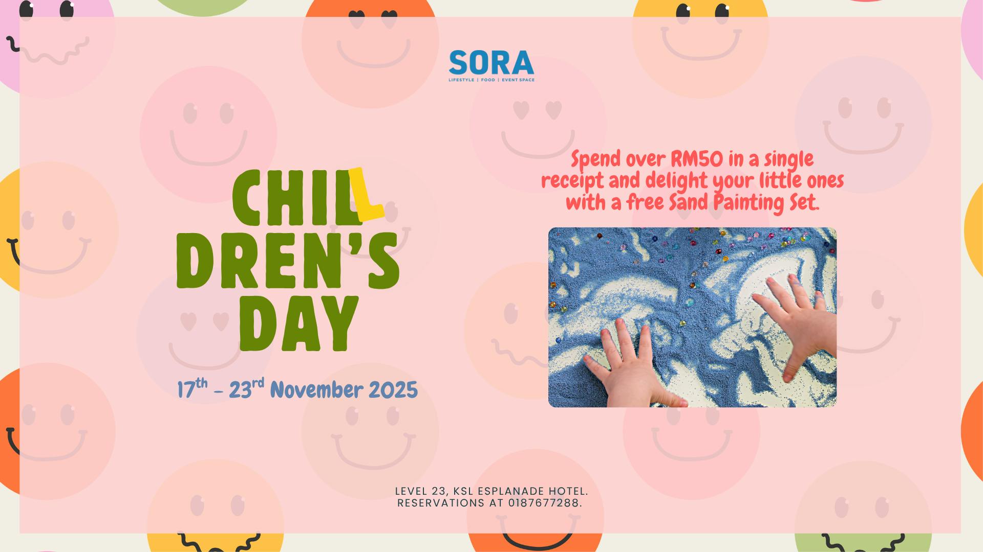 ChillDren's Day모든 프로모션 보기Spend over RM50 and your child gets to create their own colourful masterpiece with our Sand Painting Set.프로모션 모두 보기 Wedding PackageCorporate Meeting PackageSora @ SkyStay And Dine PackageNo Stress, Just RestSORA FOR 2 & 4Exclusive Deal For Return GuestsAlpaca B-day Bash StayLover's HideoutAfternoon Tea at SORARoom with OnsenSunset CelebrationSweater Weather NovemberMovember@SORARelief & ReleaseOcean DreamChillDren's Day