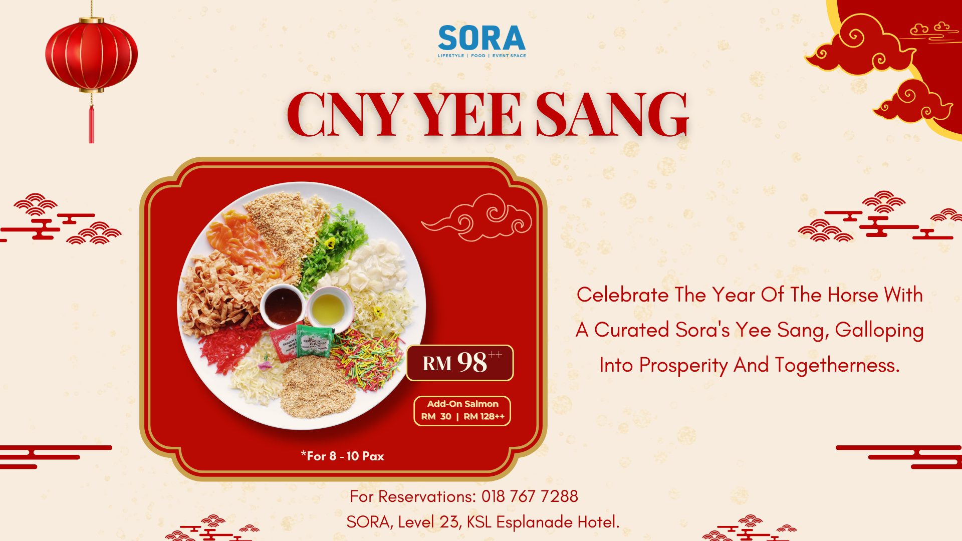 CNY Yee Sang查看所有促销活动Toss the Yee Sang in a graceful celebration of prosperity where vibrant colours and auspicious flavours come together to usher in abundance and good fortune促销 查看所有 Wedding PackageCorporate Meeting PackageSora @ SkyStay And Dine PackageNo Stress, Just RestSORA FOR 2 & 4Exclusive Deal For Return GuestsAlpaca B-day Bash StayLover's HideoutAfternoon Tea at SORARoom with OnsenSunset CelebrationFamily Splash OutLate RiserSantapan Warisan Buka Puasa 2026Luna Lights StayBermalam & BerbukaHurry, JanuaryDinner Set For TwoSora Family Lunch SetsCNY Yee Sang