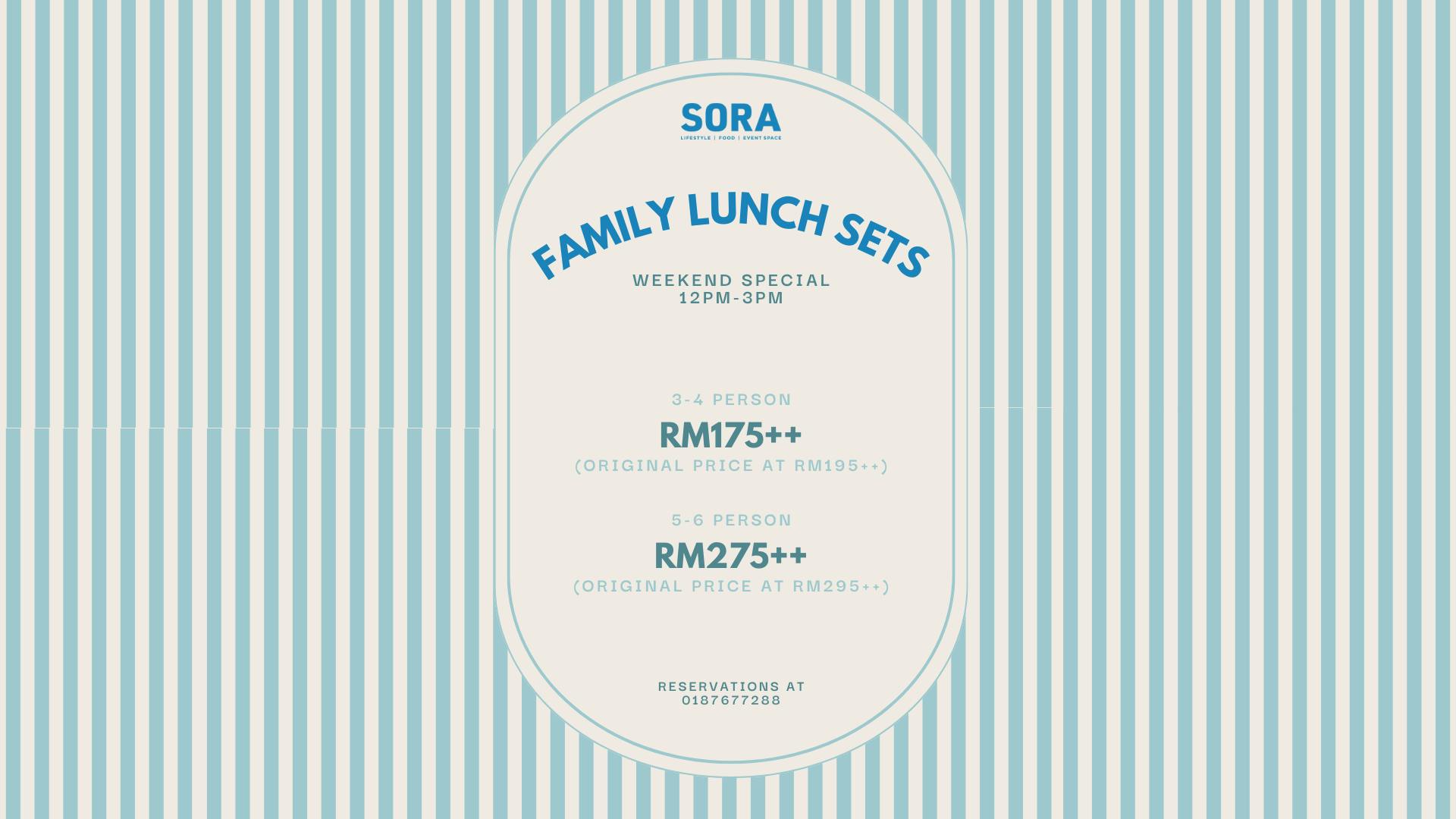 Sora Family Lunch Sets查看所有促销活动A wholesome, luscious meal set for the family. Comforting flavours, satisfying portions and great ambience for a relaxing weekend.促销 查看所有 Wedding PackageCorporate Meeting PackageSora @ SkyStay And Dine PackageNo Stress, Just RestSORA FOR 2 & 4Exclusive Deal For Return GuestsAlpaca B-day Bash StayLover's HideoutAfternoon Tea at SORARoom with OnsenSunset CelebrationFamily Splash OutLate RiserSantapan Warisan Buka Puasa 2026Luna Lights StayBermalam & BerbukaHurry, JanuaryDinner Set For TwoSora Family Lunch SetsCNY Yee Sang